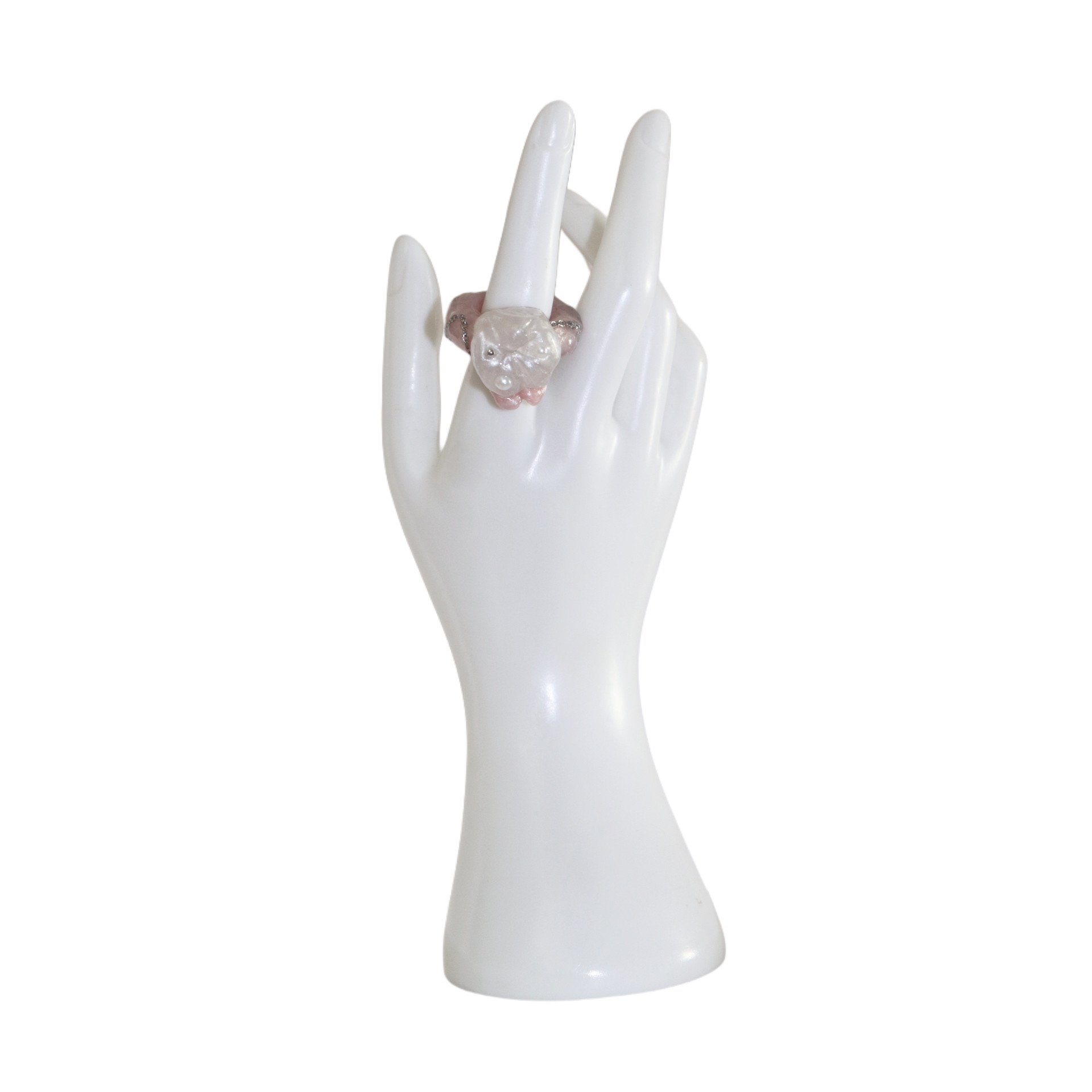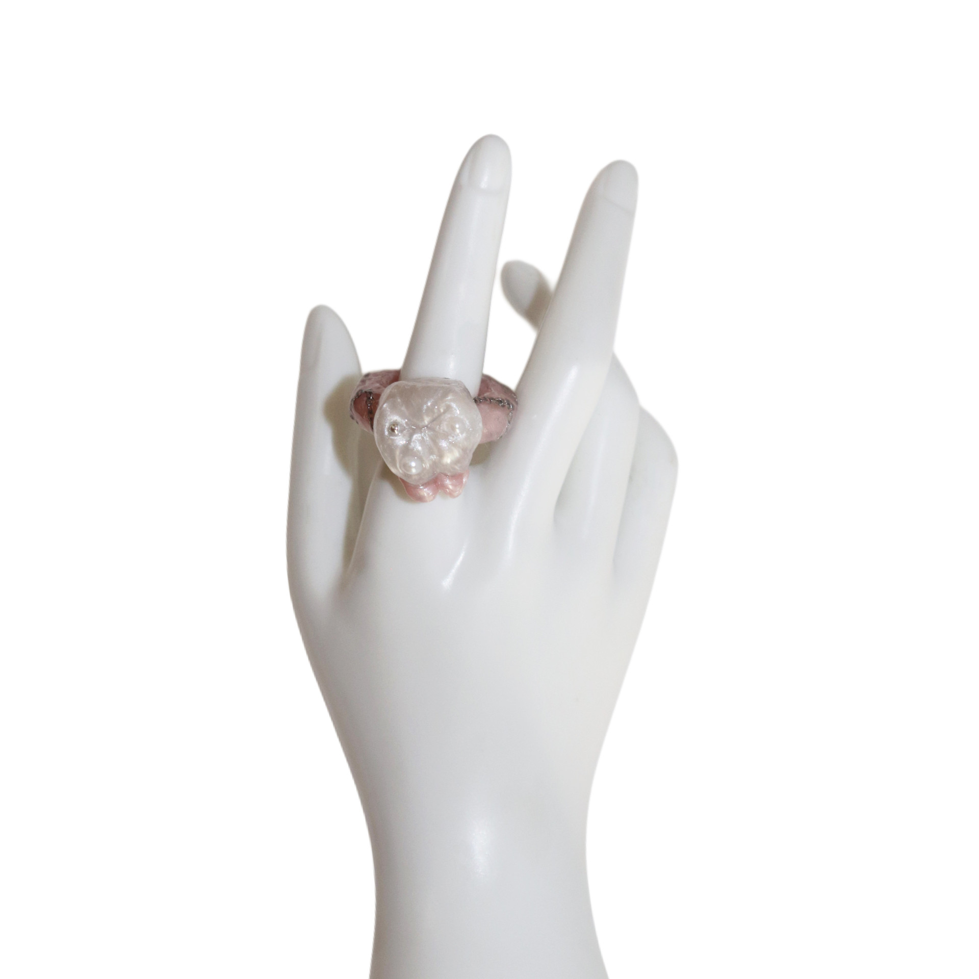 핑크빛 잇몸과 치아에서 영감을 받아 제작된 오드한 볼드 링입니다.