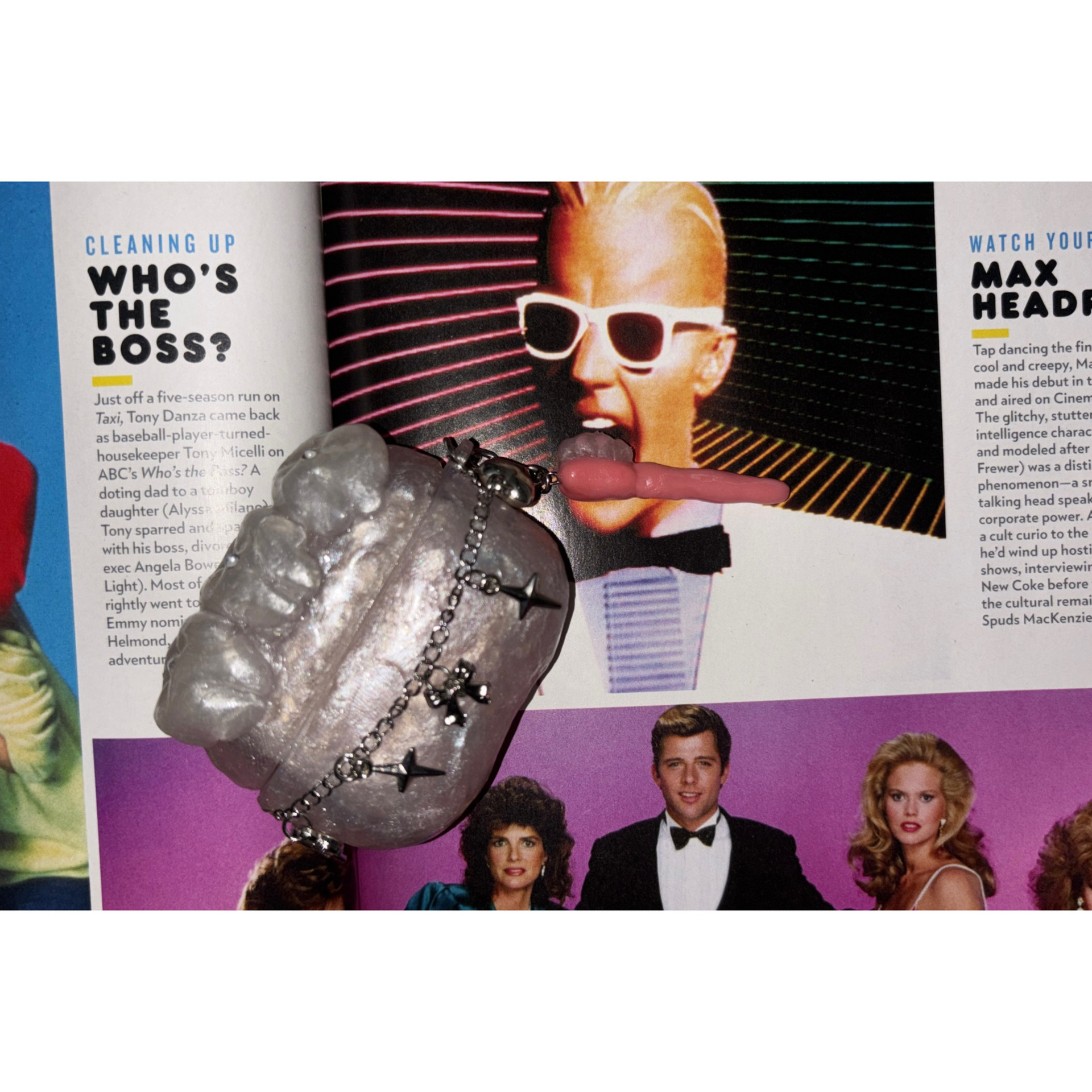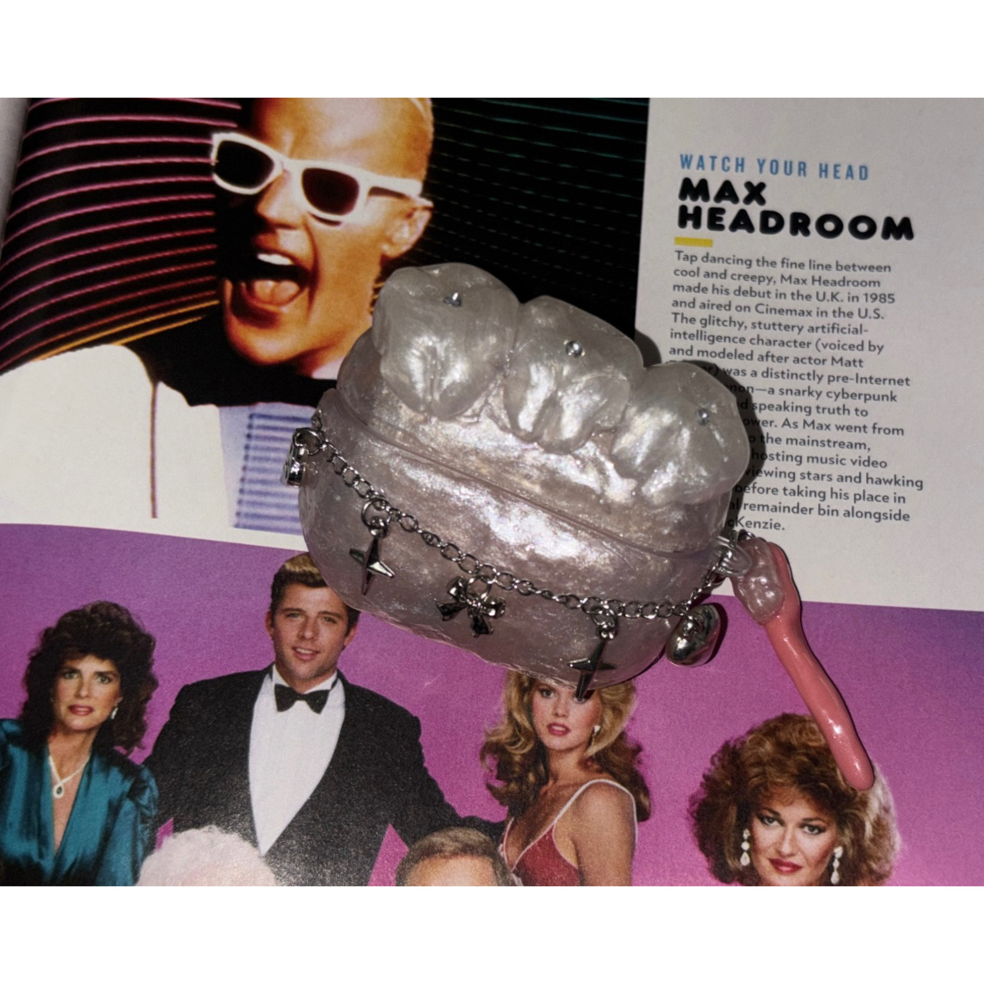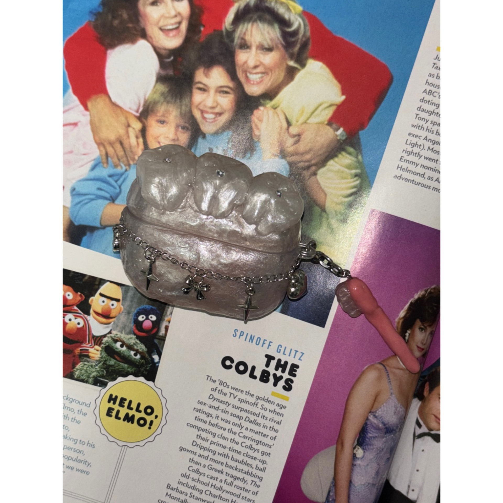 몸판을 감싸는 실버 체인 디테일은 키치하고 유니크한 포인트가 되어,