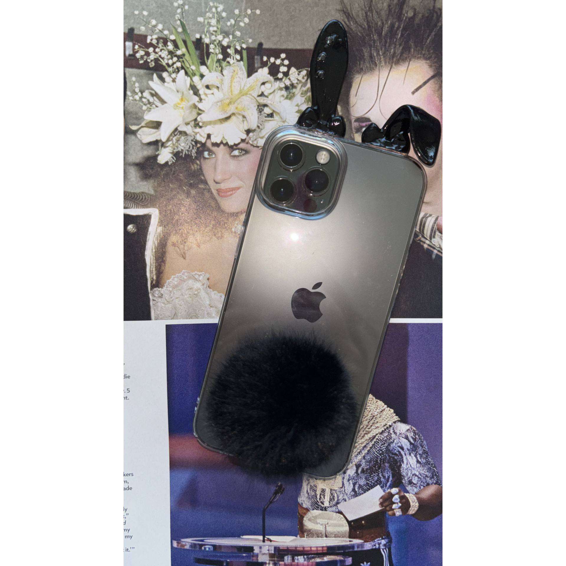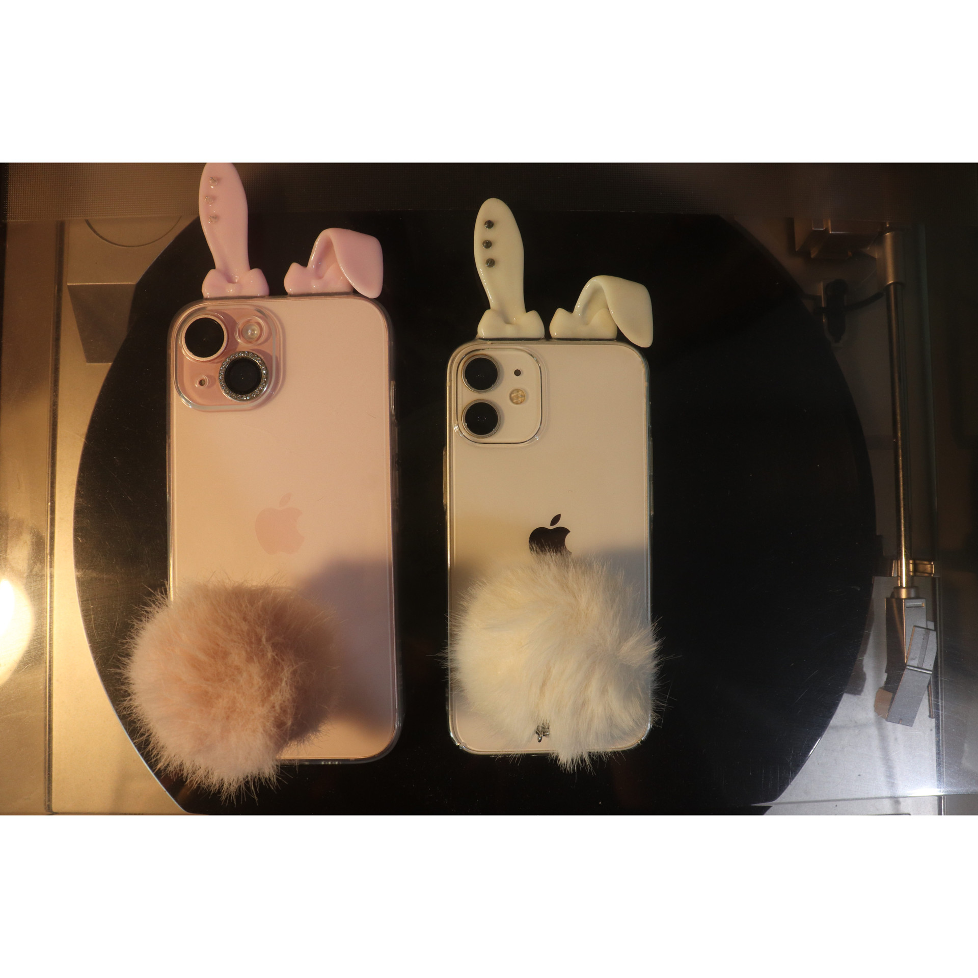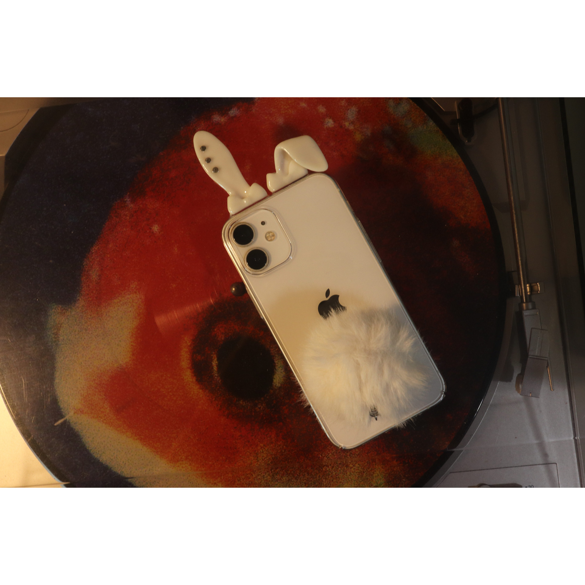 3D 프린터로 제작된 토끼귀와 아이폰 디자인을 살려주는