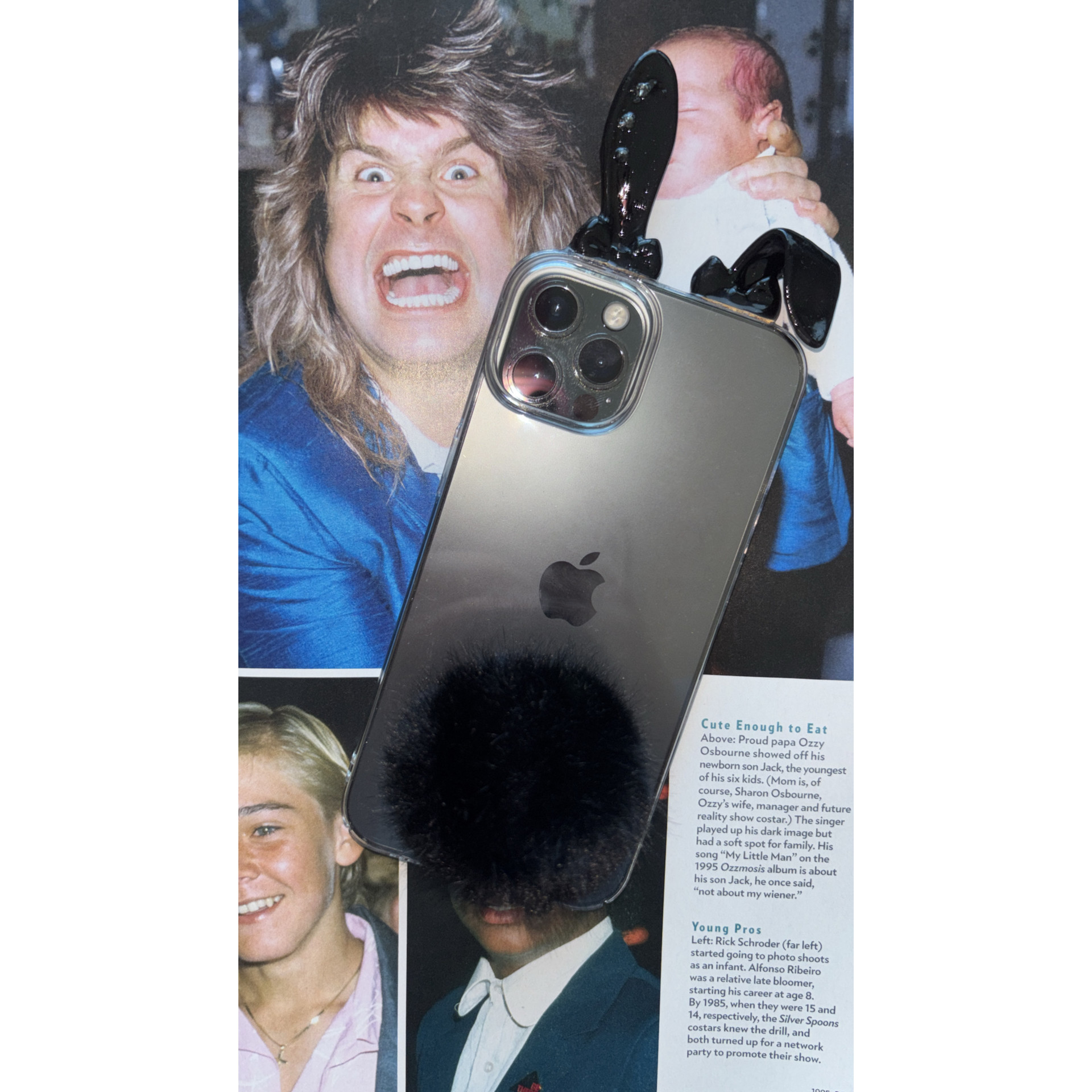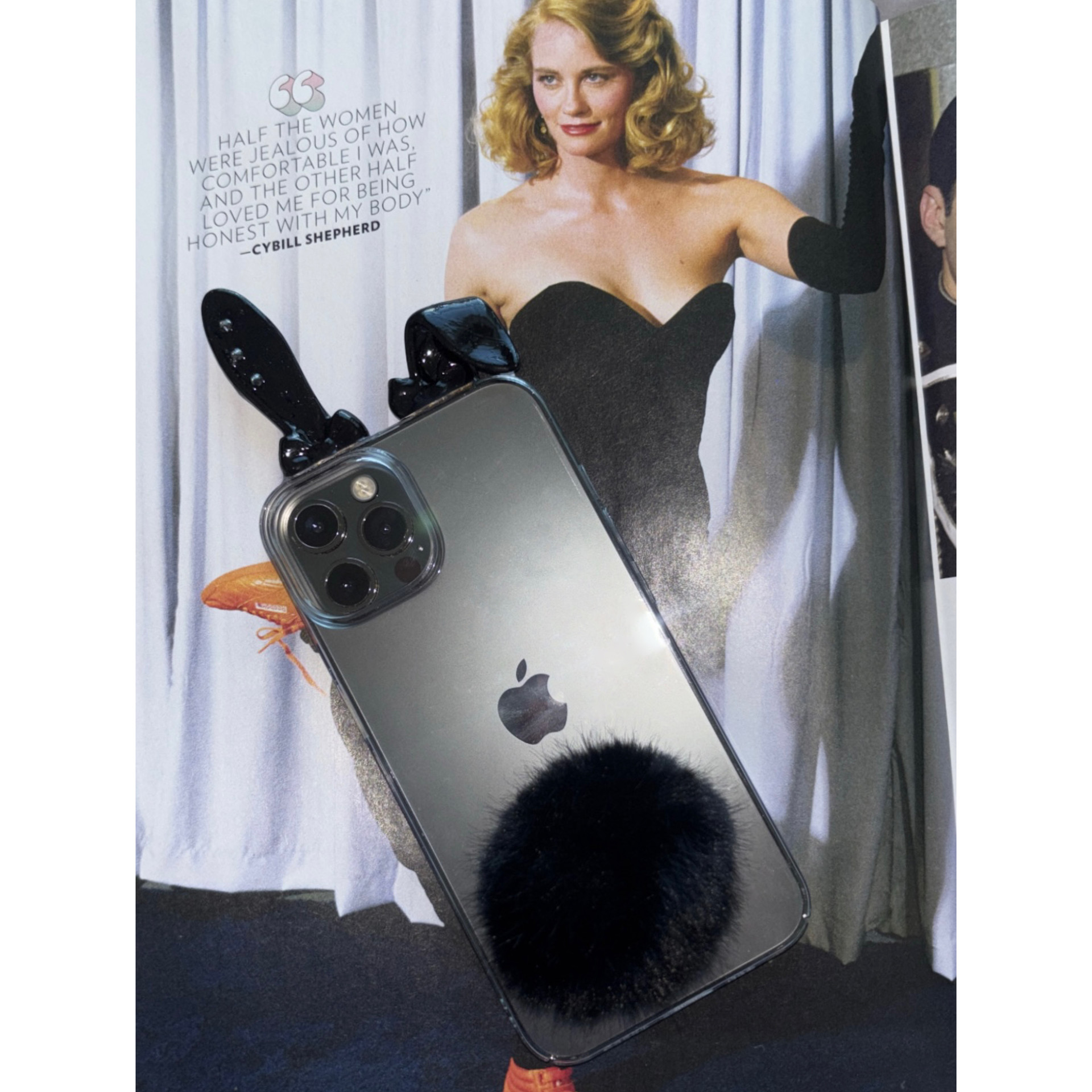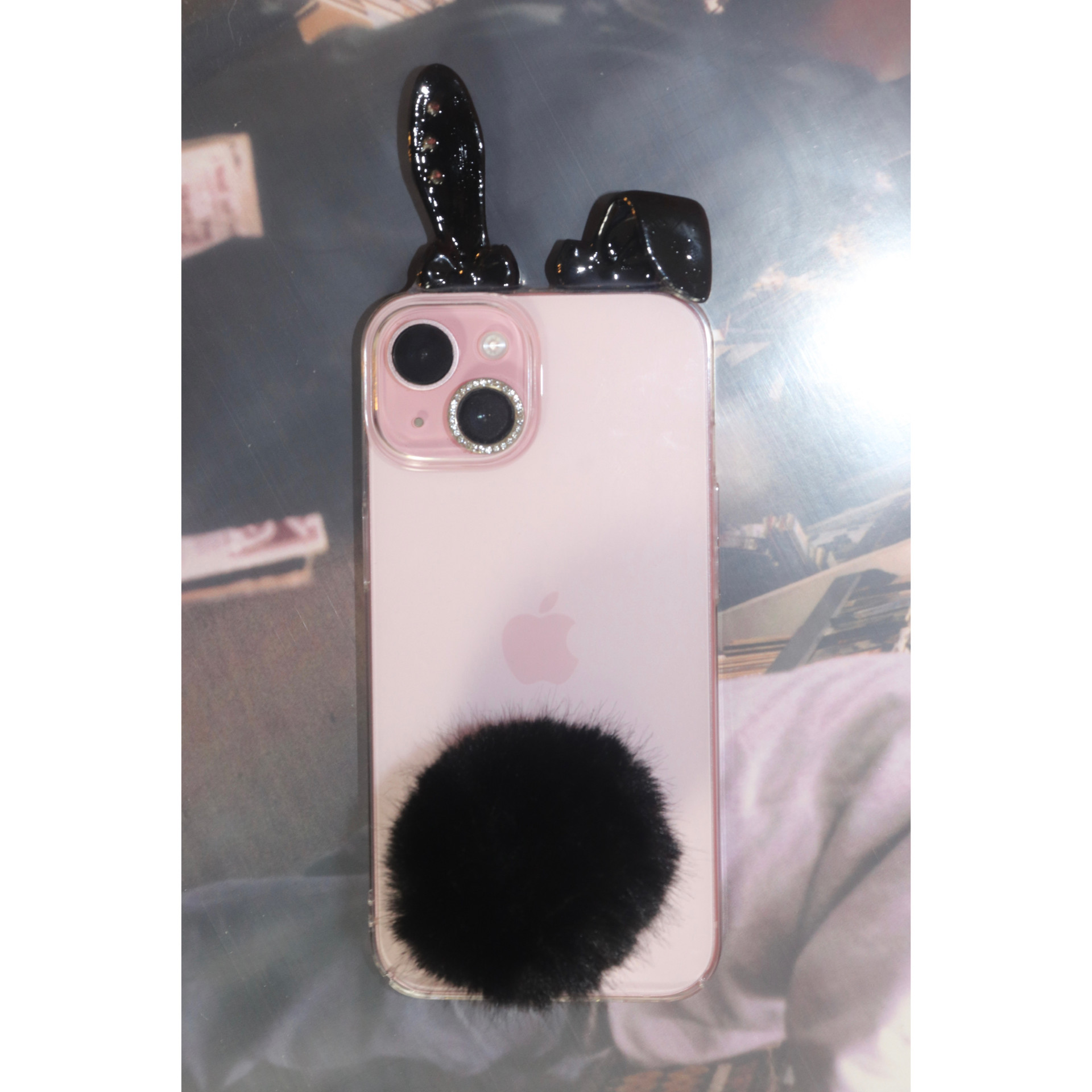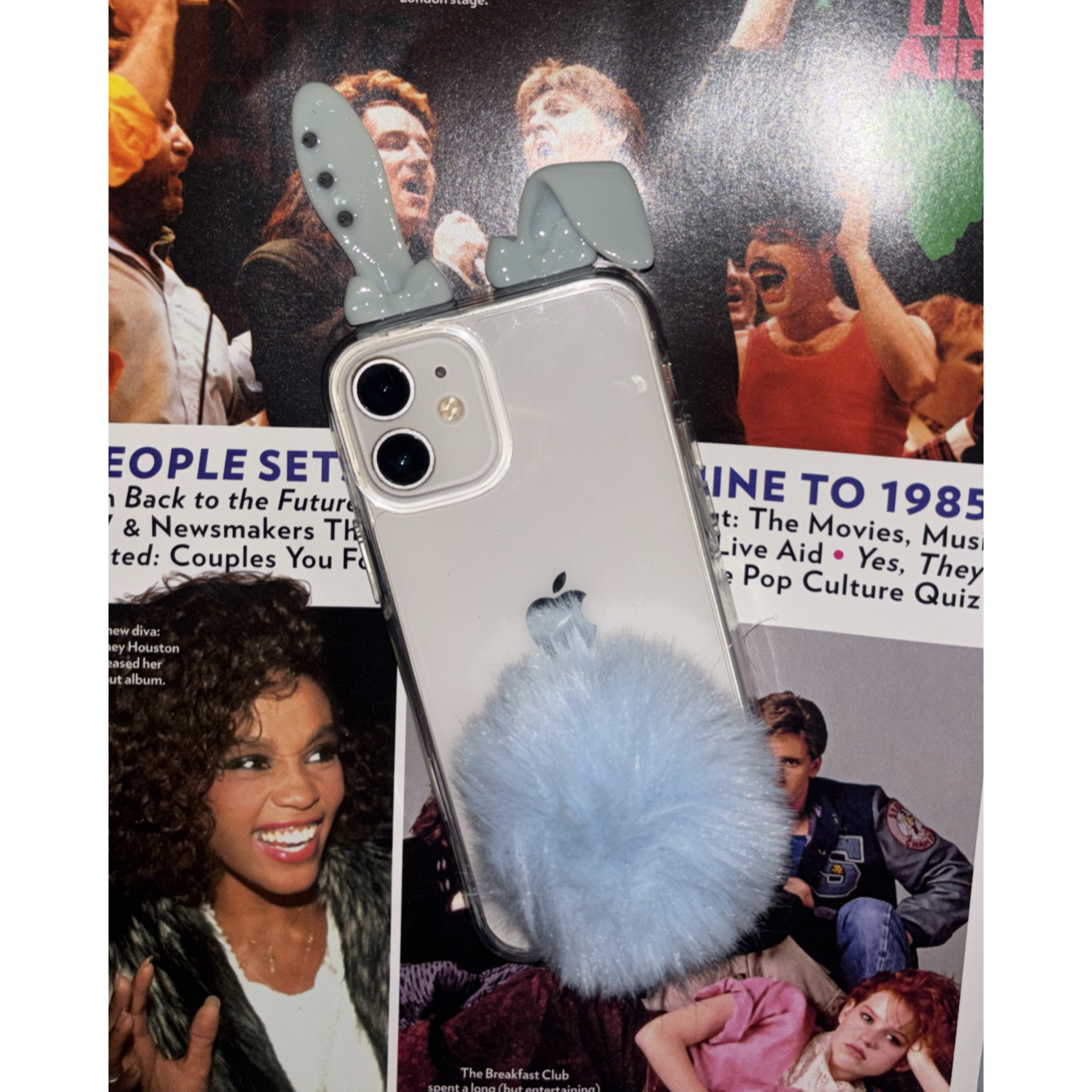 3D 프린터로 제작된 토끼귀와 아이폰 디자인을 살려주는