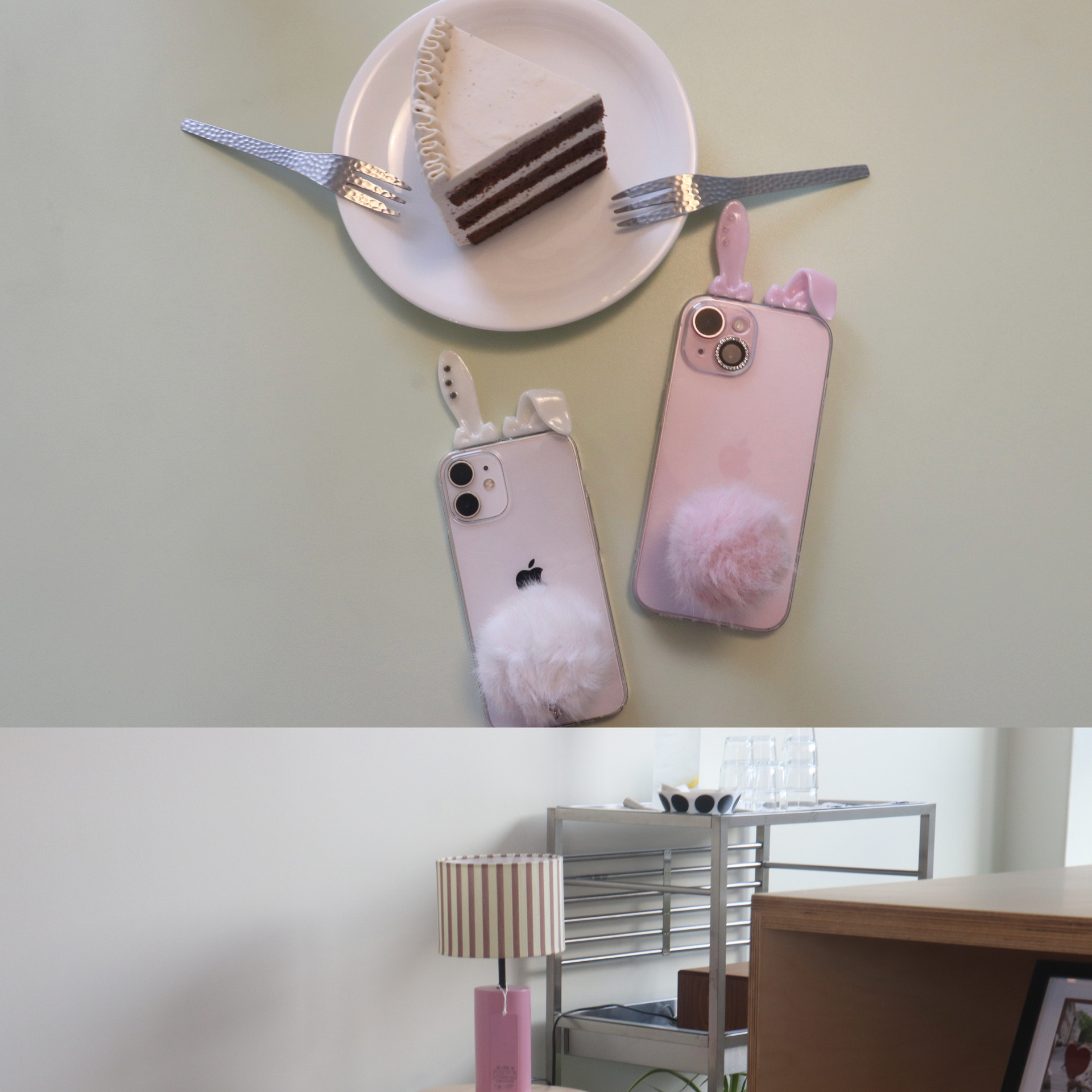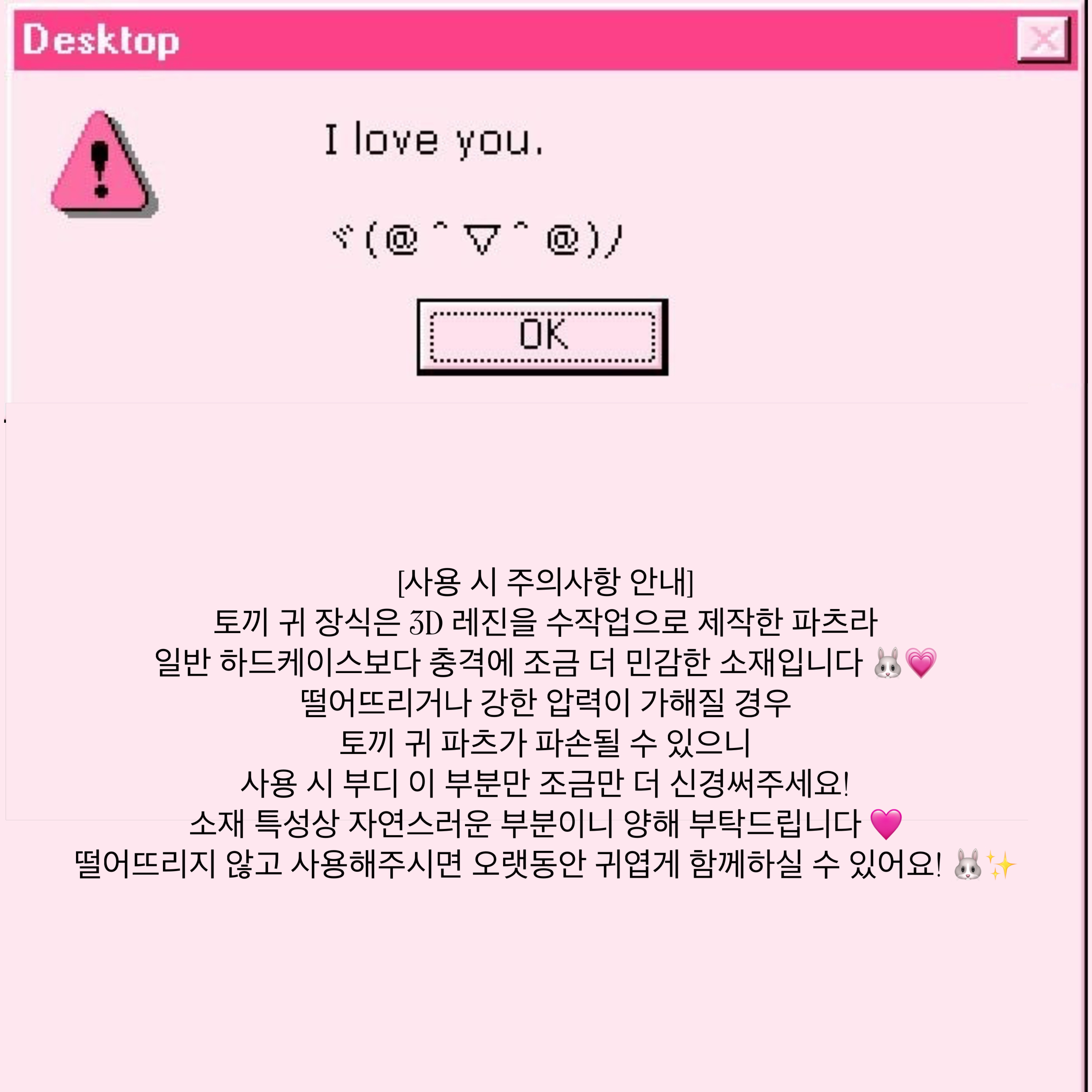 [케이스 착용 후 휴대폰을 떨어뜨리면 토끼 귀 또는 파츠 주변 케이스 부분이 파손될 가능성이 높습니다. 신중한 구매 부탁드립니다.