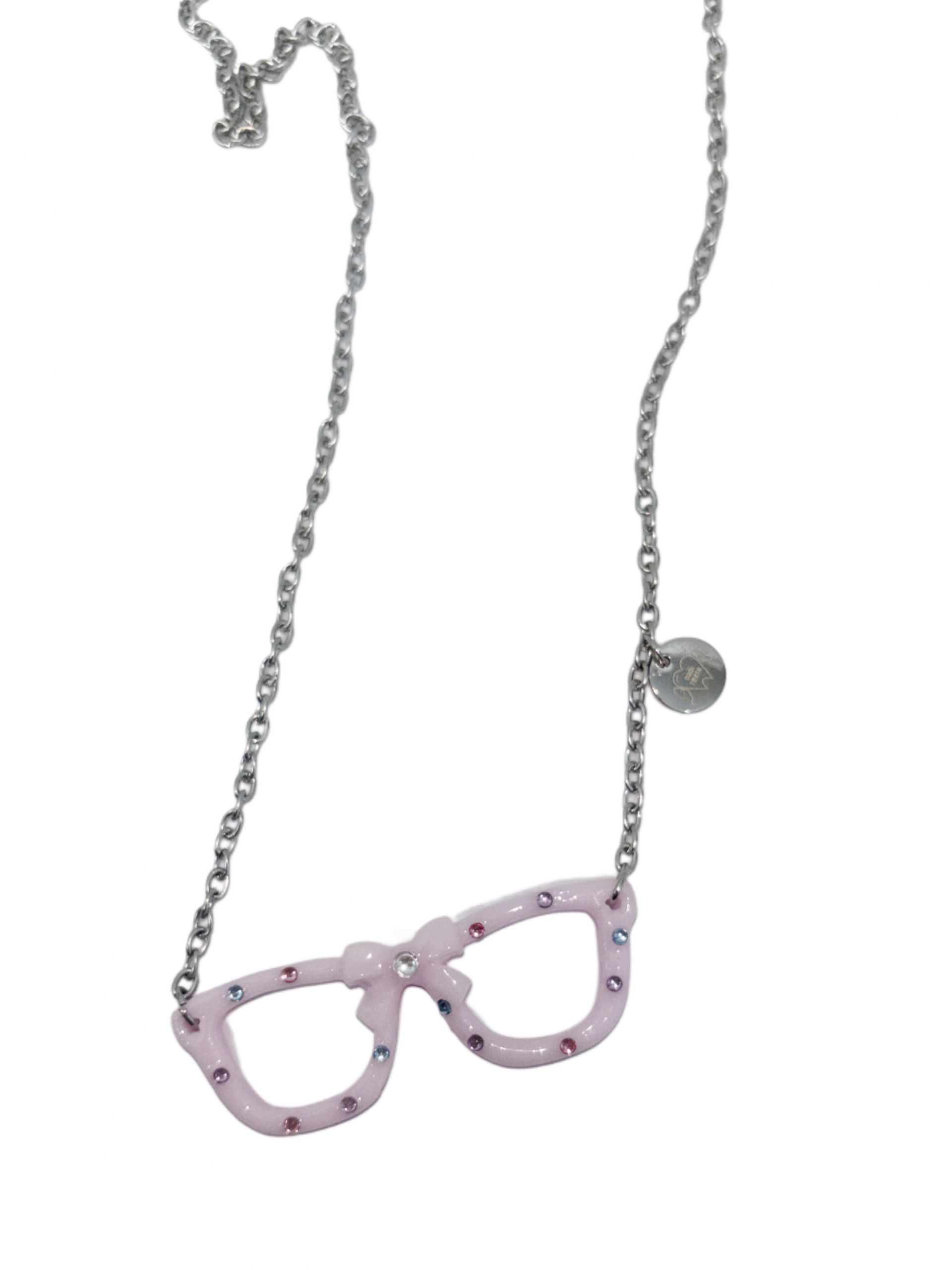 Pink Ribbon Bow Glasses NecklaceNEWMD