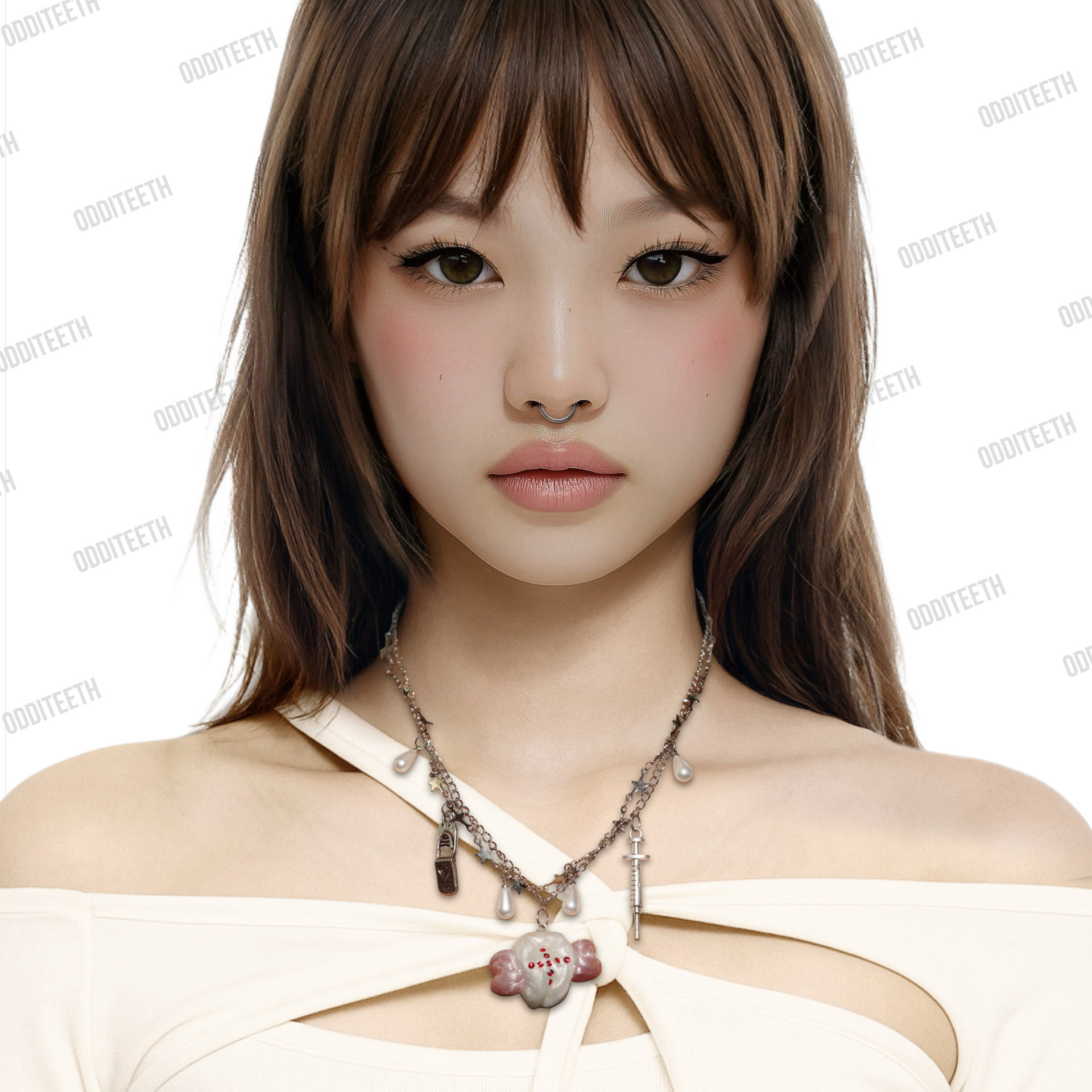 치과에서 영감을 받아 제작된 핑크 엔젤 네크리스입니다.