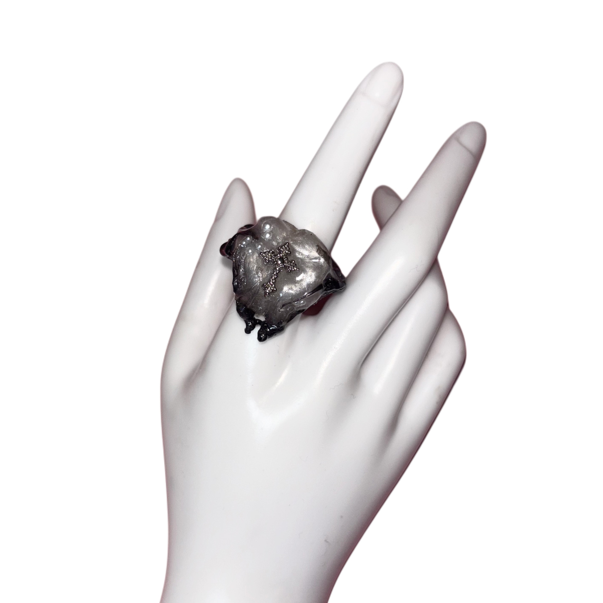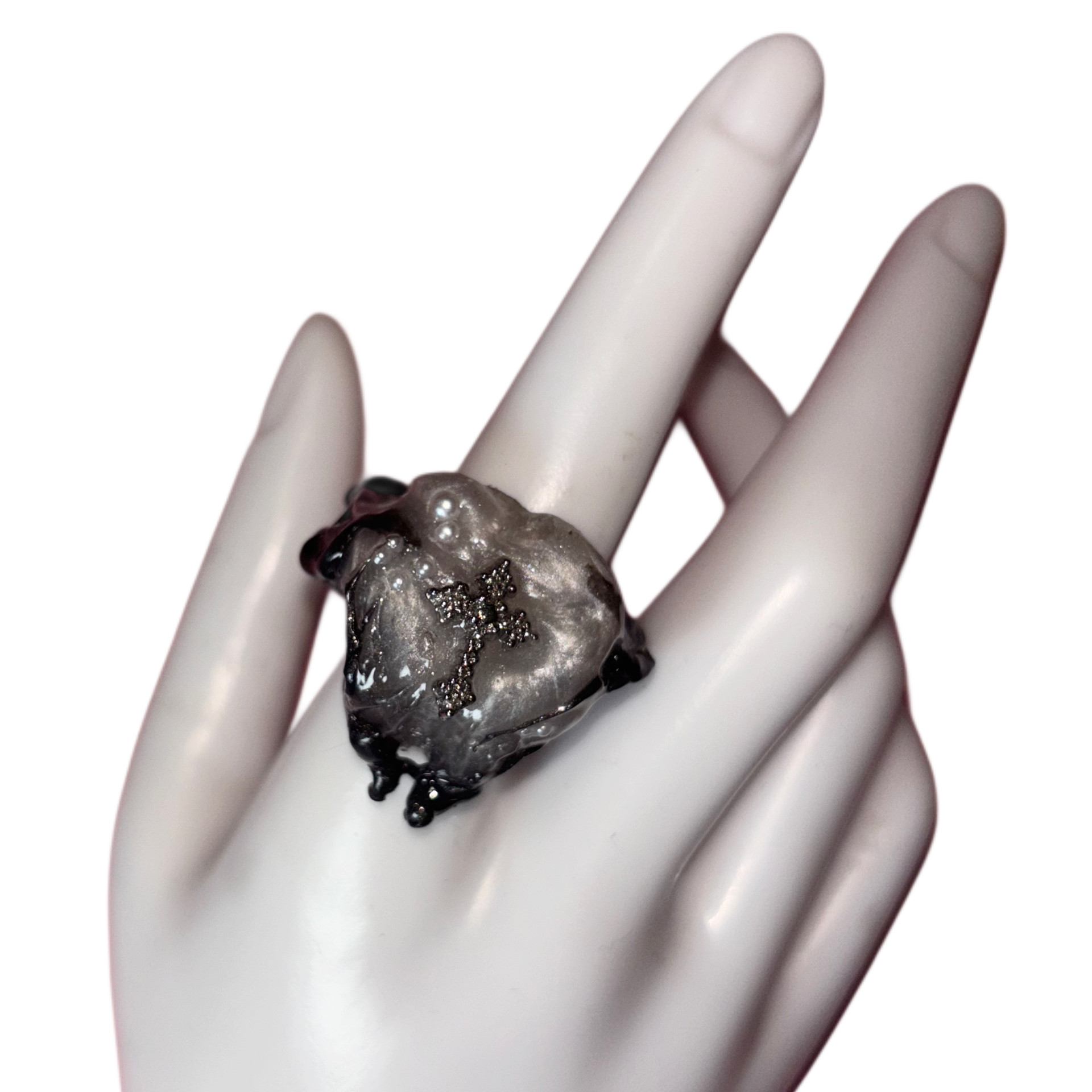 충치에 전염된 이빨에서 영감을 받아 제작된 볼드 링입니다.