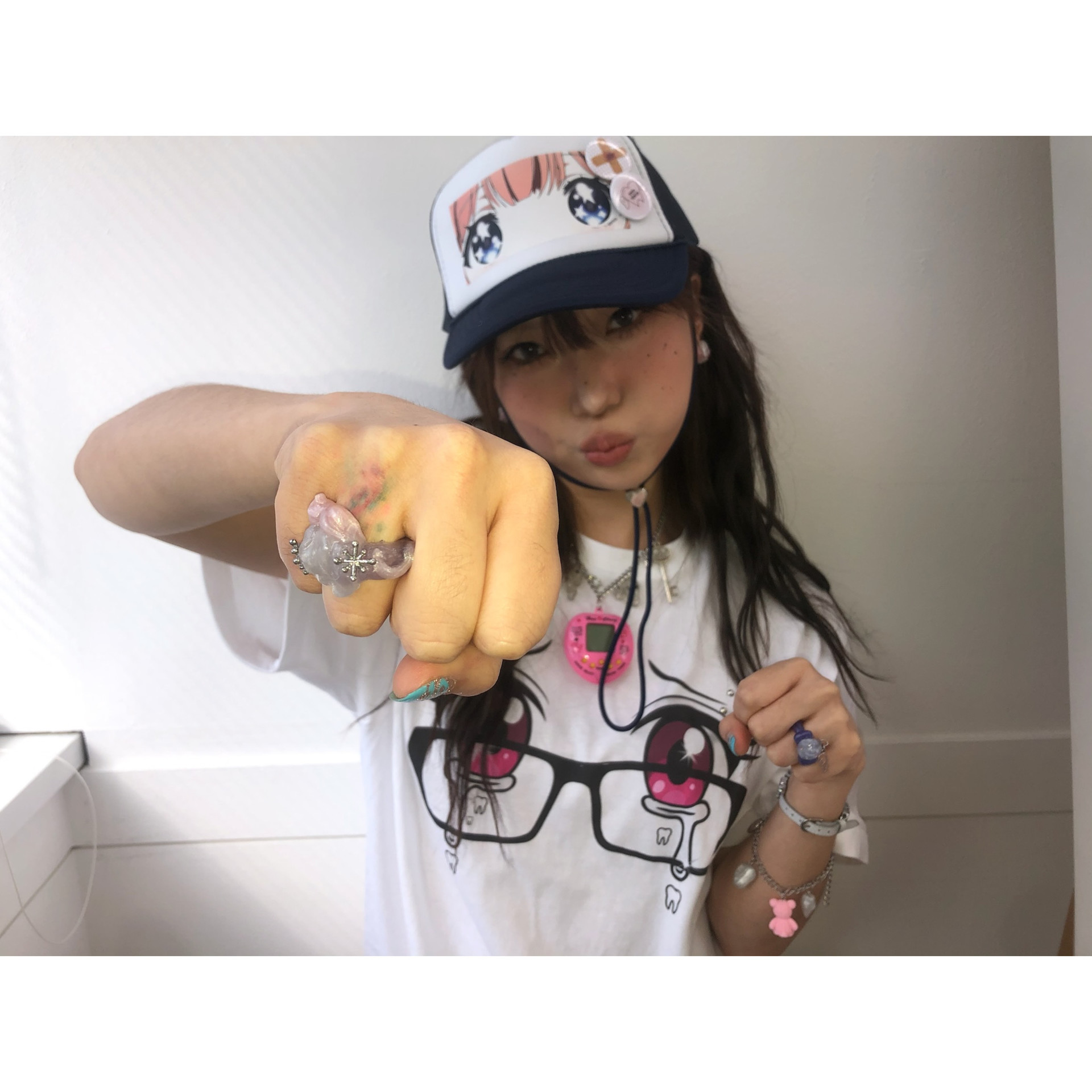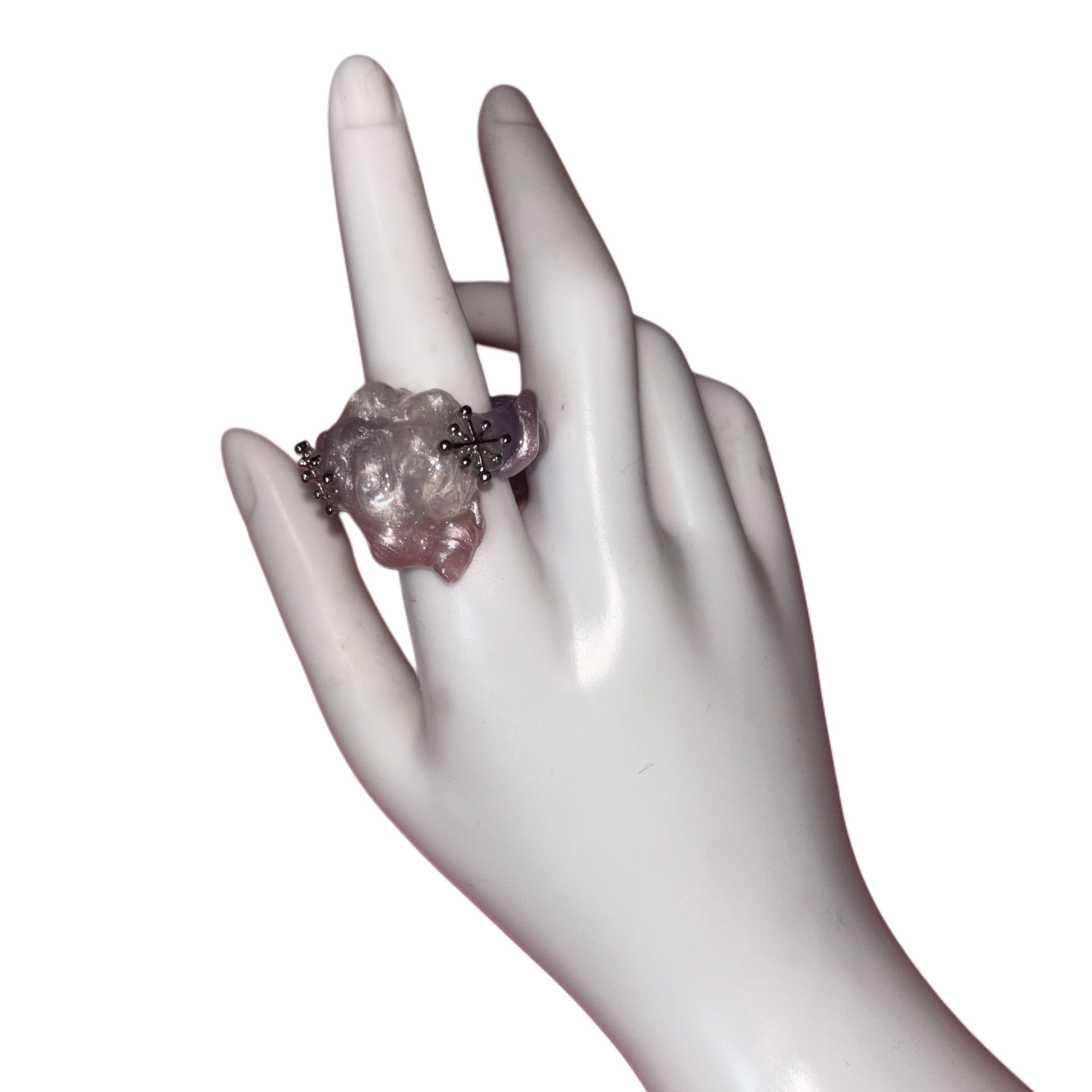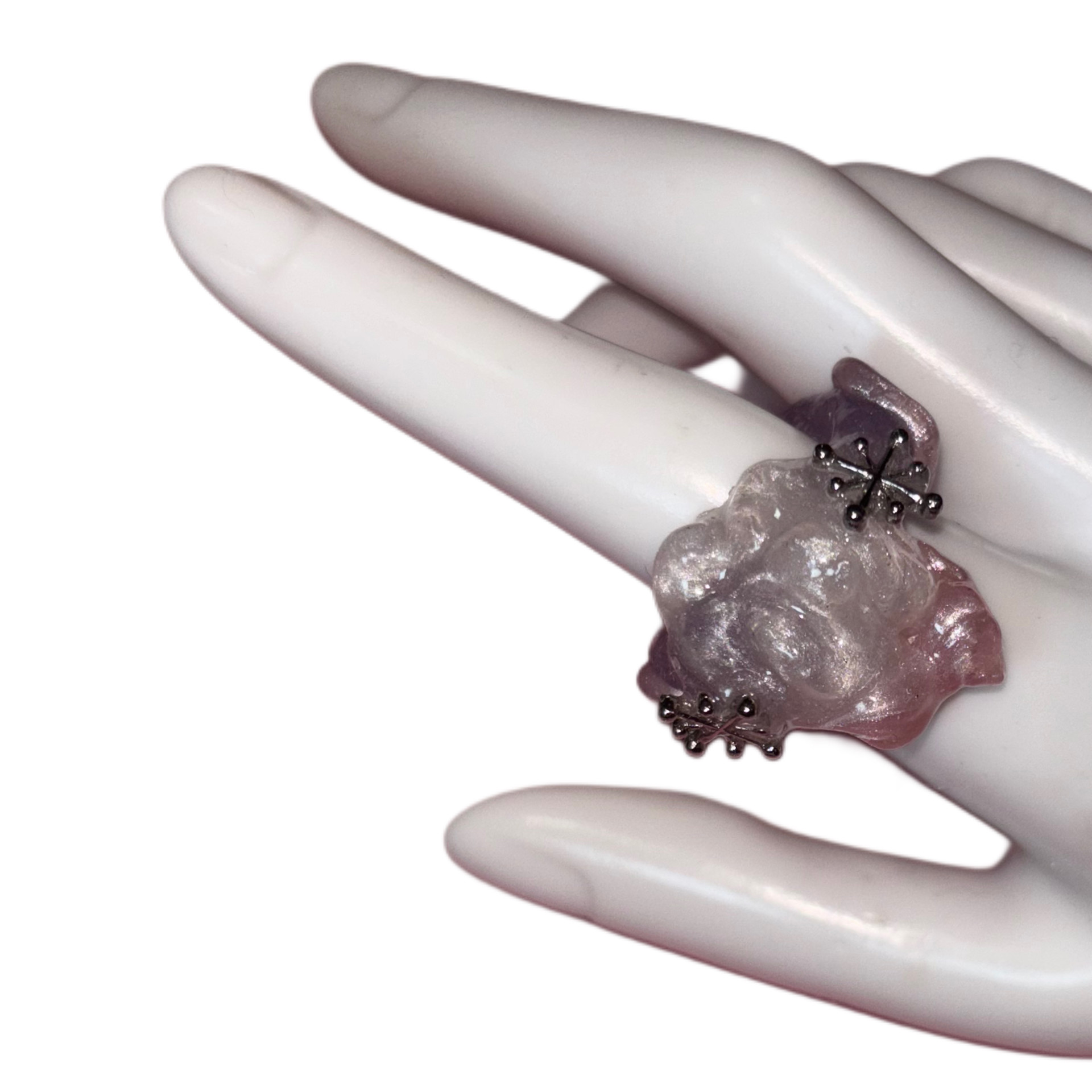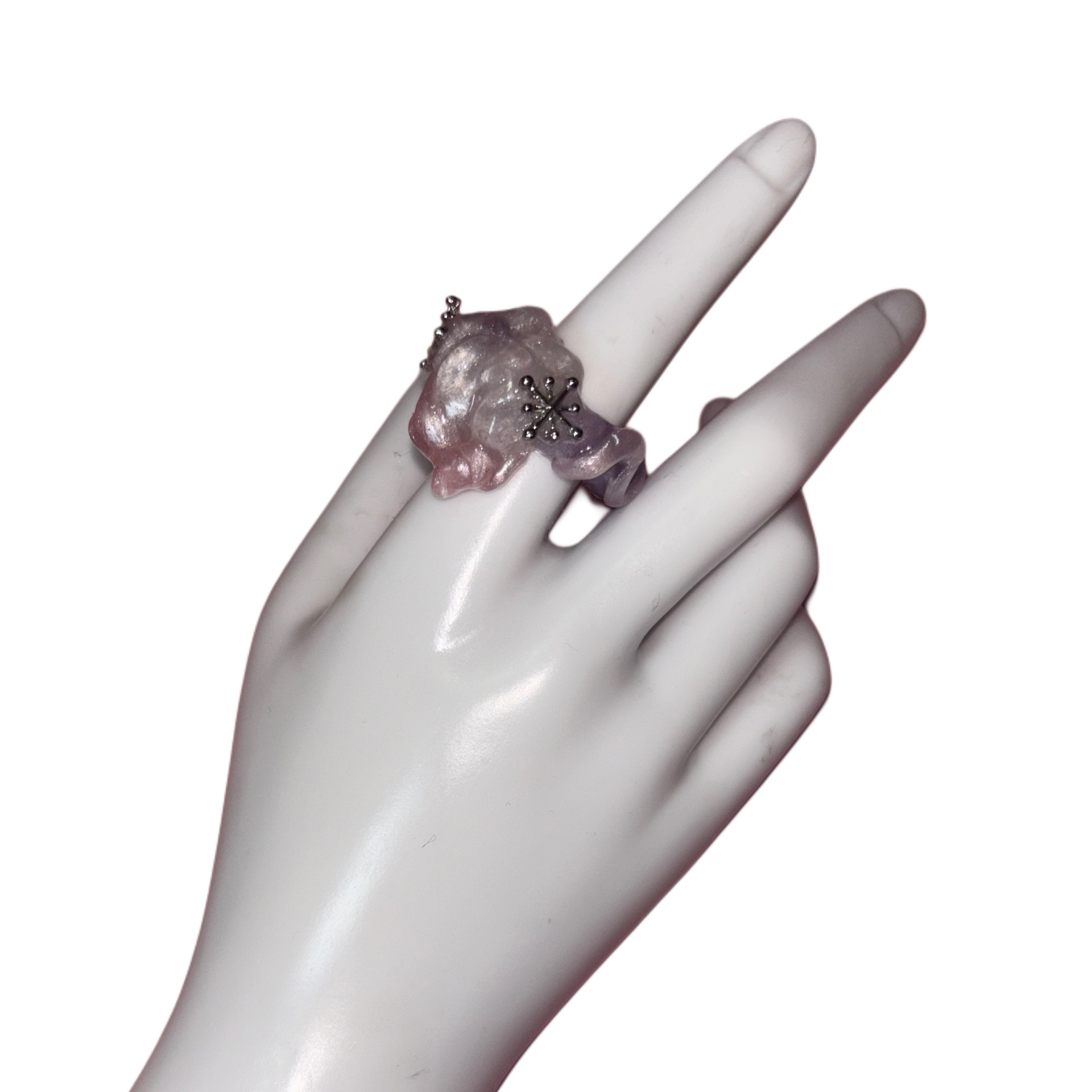 눈꽃 모양의 실버 참과 아이스크림을 닮은 컬러감이 돋보이는 볼드 링입니다.