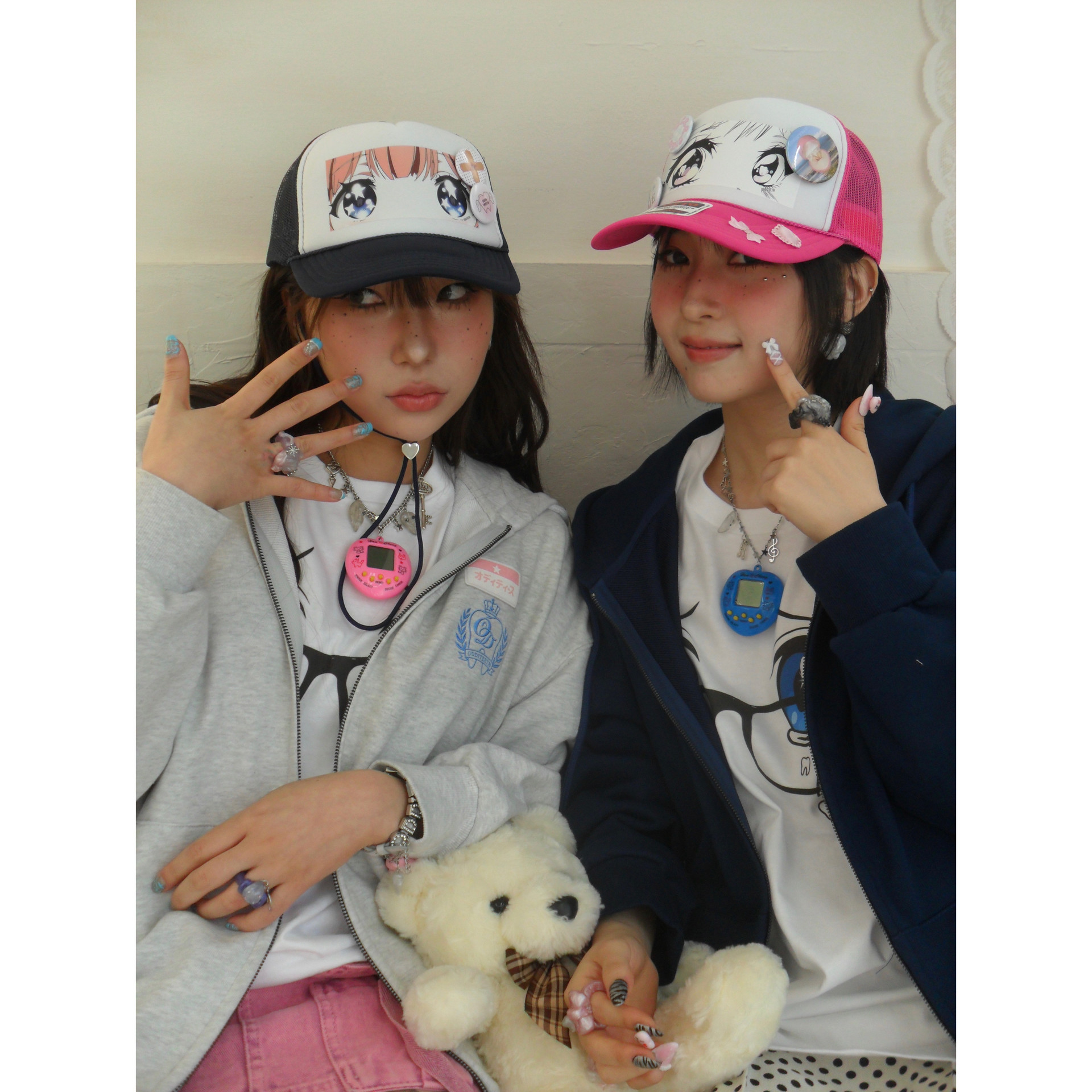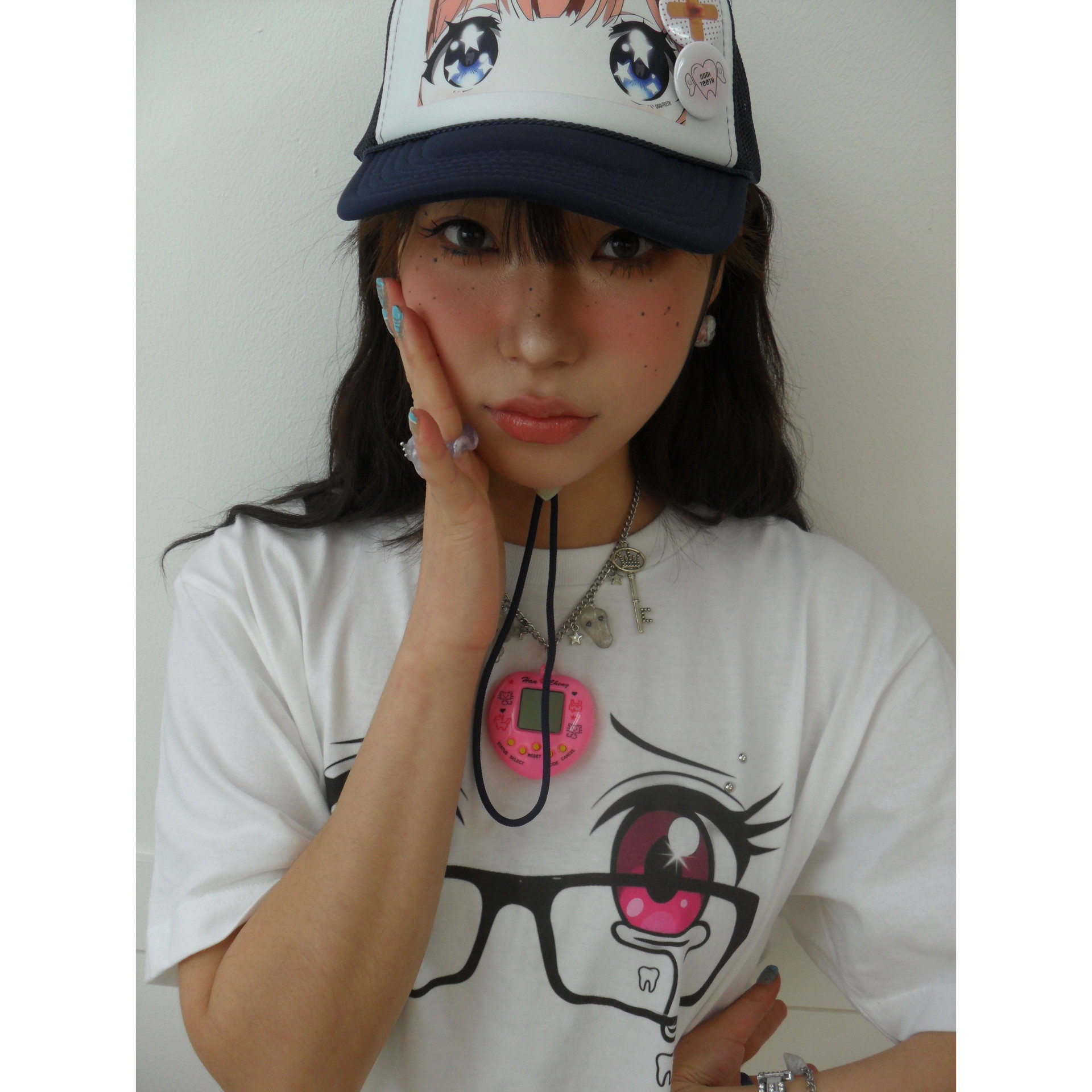일본 애니메이션 그림체로 표현된 브러쉬걸 눈 그래픽 트러커 캡입니다.